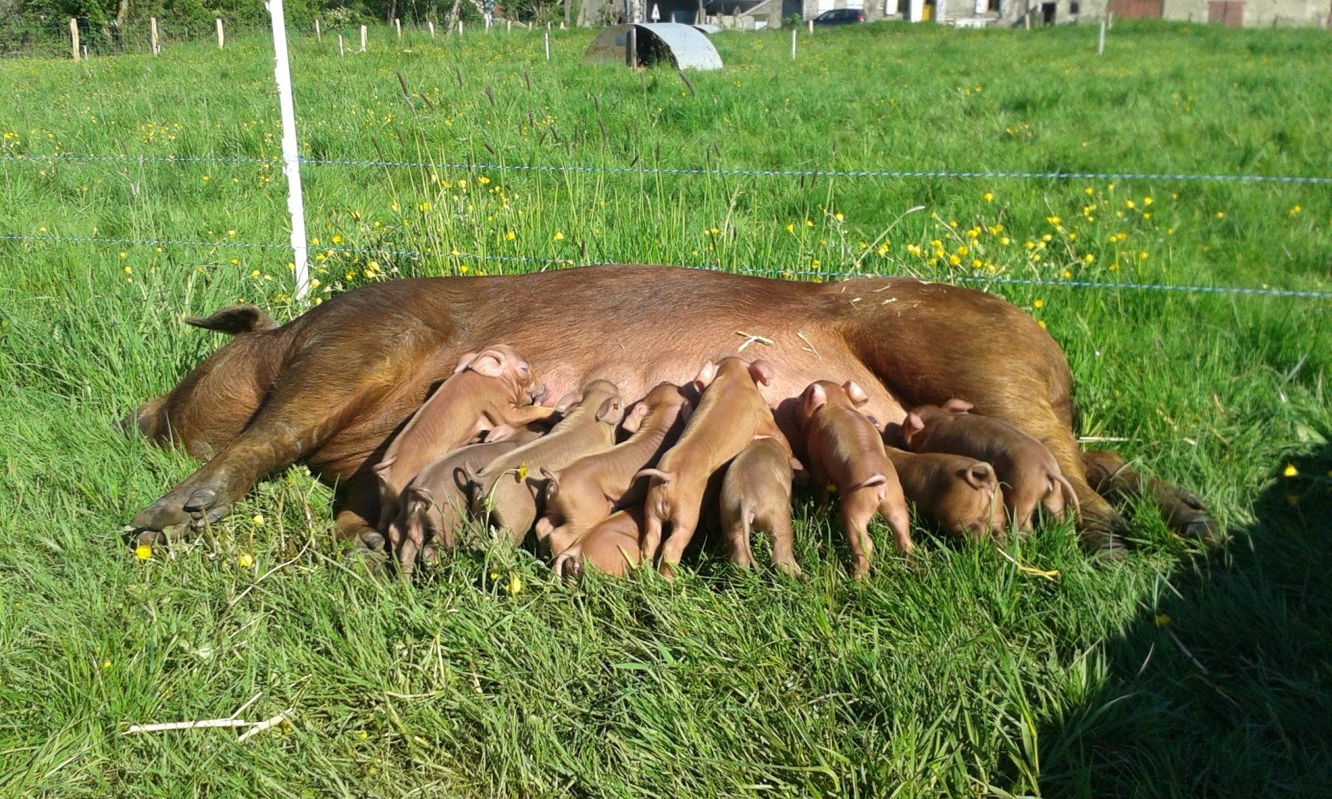 côtes, échines, rôtis, saucisses, rôtis, rouelles, palette, jarrets, filet mignon, poitrine, pâté de tête et terrine de campagne.